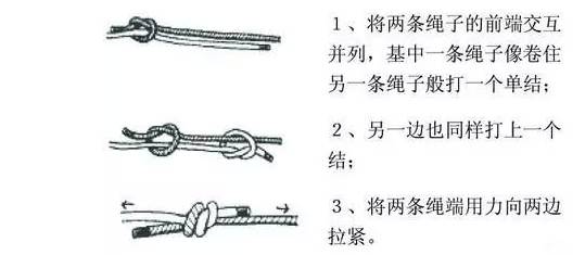 下面几个小动图,简单明了地展示了几种常用绳结的系法,一起来学习一下吧~